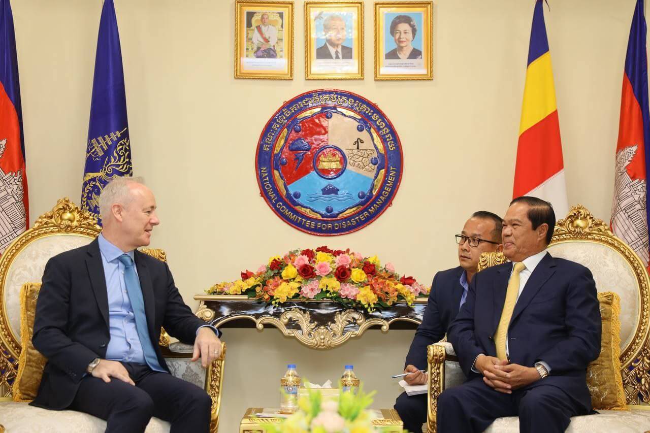នៅគណៈកម្មាធិការជាតិគ្រប់គ្រងគ្រោះមហន្តរាយ ឯកឧត្តម កិត្តិសង្គហបណ្ឌិត គន់ គីម ទេសរដ្ឋមន្ត្រី អនុប្រធានទី១ គ.ជ.គ.ម. បានអនុញ្ញាតឱ្យ លោក ចន អោយលីហ្វ (John Aylieff) នាយកប្រចាំ កម្មវិធីស្បៀងអាហារពិភពលោក នៃអង្គការសហប្រជាជាតិ ប្រចាំនៅអាស៊ី និងប៉ាស៊ីហ្វិក ចូលជួបសម្តែងការគួរសម នាព្រឹកថ្ងៃទី៣១ ខែមករា ឆ្នាំ២០២៤ក្នុងភាពជាដៃគូ លើការគ្រប់គ្រងហានិភ័យ គ្រោះមហន្តរាយនៅកម្ពុជា។