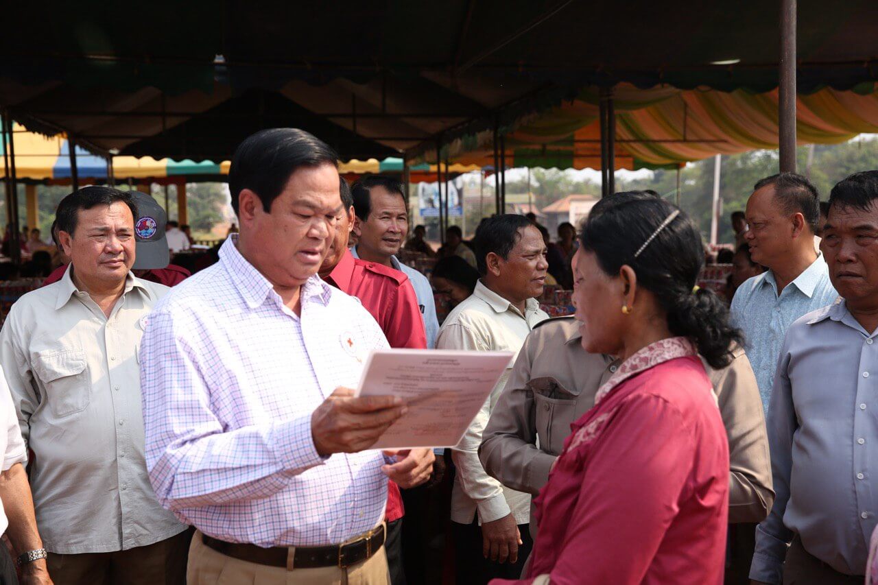 ជំនួសមុខប្រជាពលរដ្ឋដែលទទួលបានអំណោយក្នុងពេលនេះ ឯកឧត្តម គន់ គីម ប្រធានកិត្តិយស សាខាកាកបាទក្រហមខេត្ត បានថ្លែងអំណរគុណយ៉ាងជ្រាលជ្រៅចំពោះ សម្តេចកិត្តិព្រឹទ្ធបណ្ឌិត ដែលបានផ្តល់អំណោយដល់អ្នកងាយរងគ្រោះនៅស្រុកត្រពាំងប្រាសាទ និងស្រុកអន្លង់វែង ៤៣០គ្រួសារ និង សូមជូនពរអោយសម្តេចទាំងពីរ ព្រមទាំងក្រុមគ្រួសារ បានសេចក្តីសុខសប្បាយ ជោគជ័យគ្រប់ការងារ។